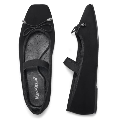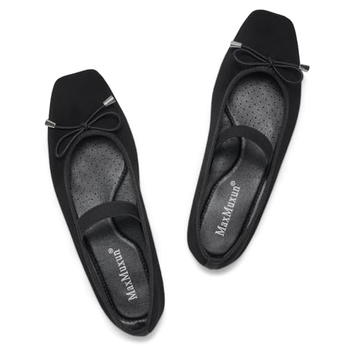 HOT ! MaxMuxun Ballet Flats for Women Closed Square Toe Mary Jane Flats with Bow Elastic Strap Comfortable Dressy Women's Flats