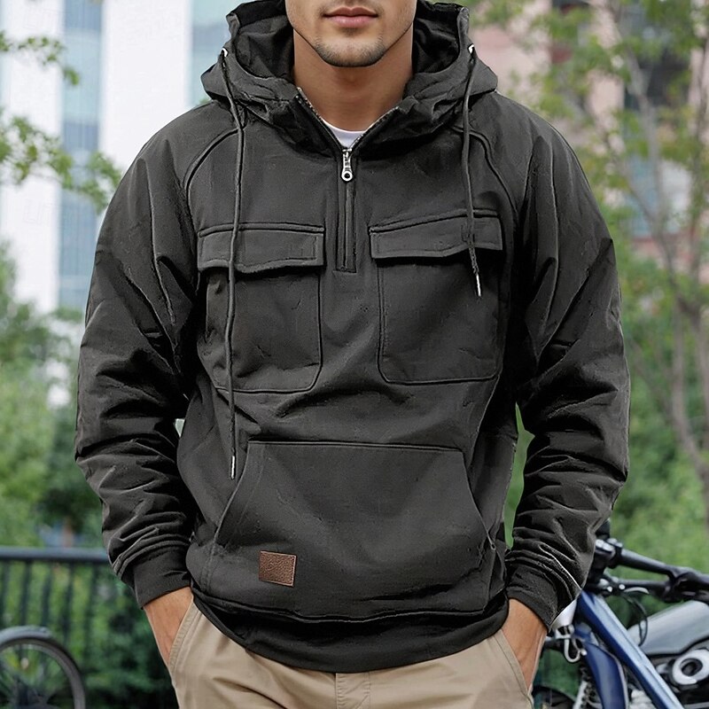 More information about Men's Hoodie Quarter Zip Hoodie Tactical Hoodie Tactical Wine Red Black Wine Army Green Navy Blue Hooded Plain Pocket Tactical Sports & Outdoor Daily Streetwear Cool Casual Spring & Fall