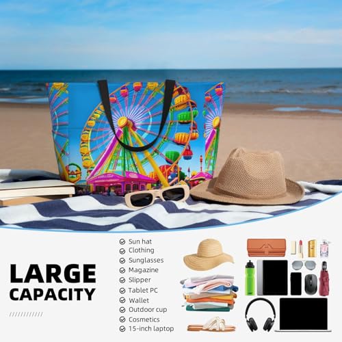 corlorful park Large Capacity Beach Travel Bag, Foldable Beach Bag with Zipper, Great for Grocery Bag Pool Gym Travel Shopping 7