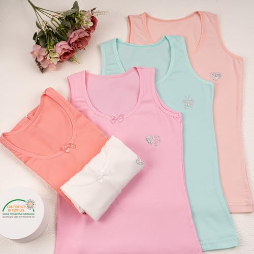 ® 5 Pack Girls Cotton Undershirts Rhinestones & Glitter Underwear Tank Top 2-15 Years 4