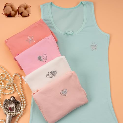 • ✅ 5 Pack Girls Cotton Undershirts Rhinestones & Glitter Underwear Tank Top 2-15 years