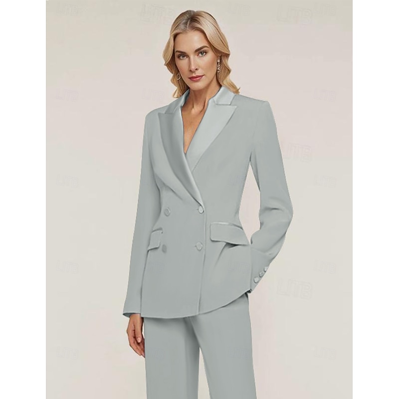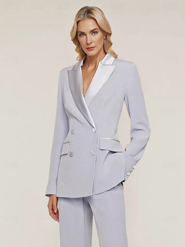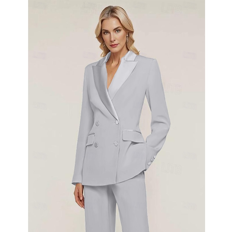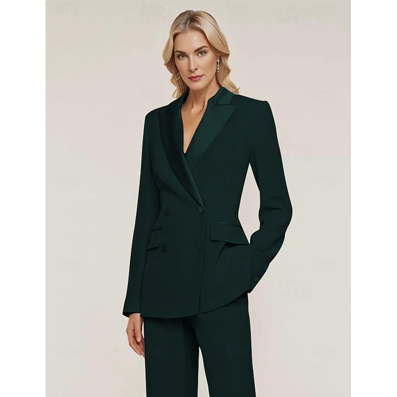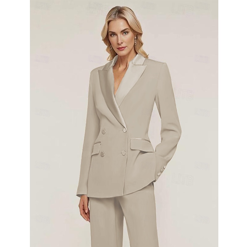 More information about Women's Blazer Sport Coat Formal Wedding Guest Chiffon Elegant Long Sleeve Peak Lapel Double Breasted