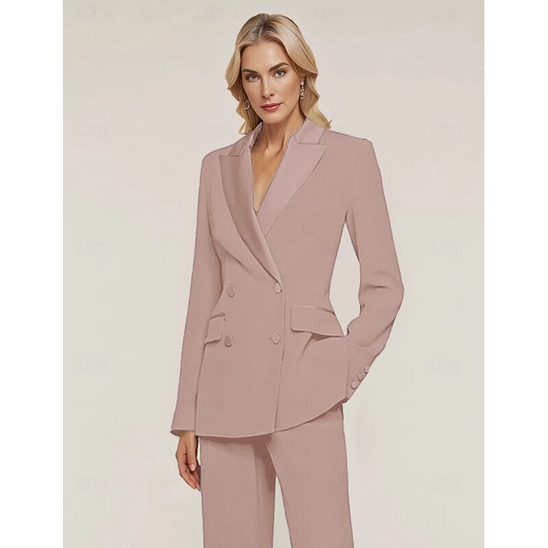 HOT ! Women's Blazer Sport Coat Formal Wedding Guest Chiffon Elegant Long Sleeve Peak Lapel Double Breasted