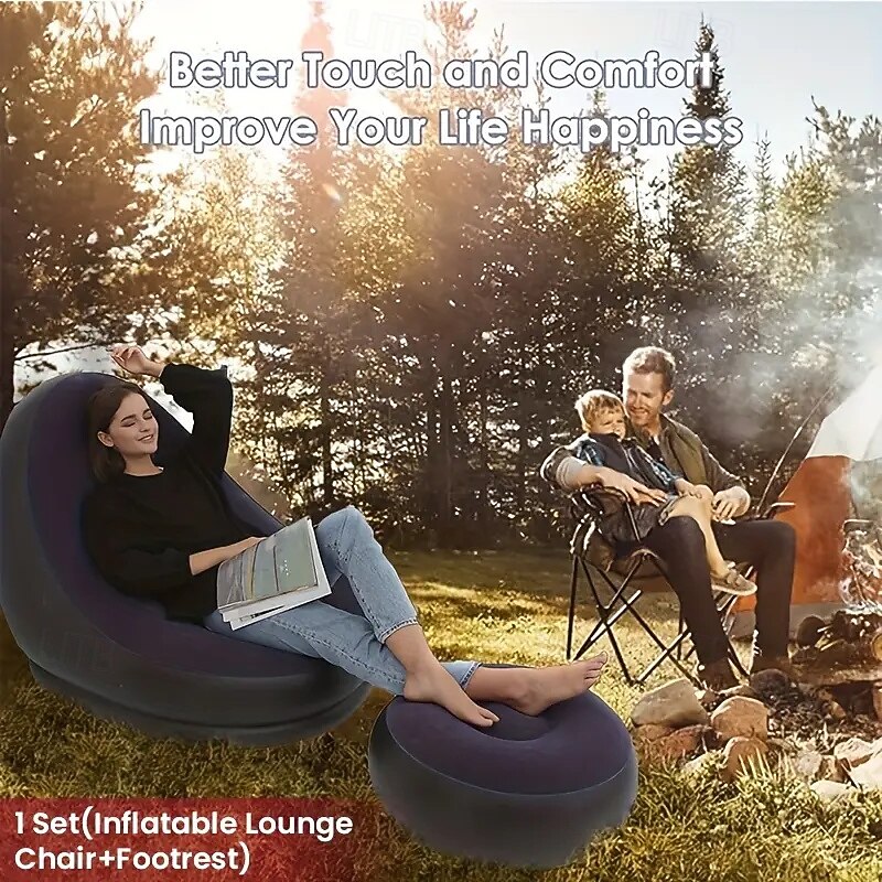 HOT ! Portable Inflatable Sofa with Foot Pedals - Comfortable Foldable Outdoor Sofa for Camping with Restoration Kit