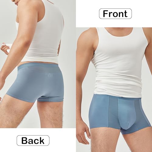 • Premium Ice Silk & Modal Fabric - Made from 92% modal and 8% spandex, these men's ice silk seamless boxers offer a silky-smooth, breathable, and durable feel.
