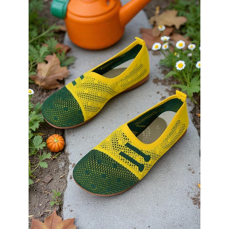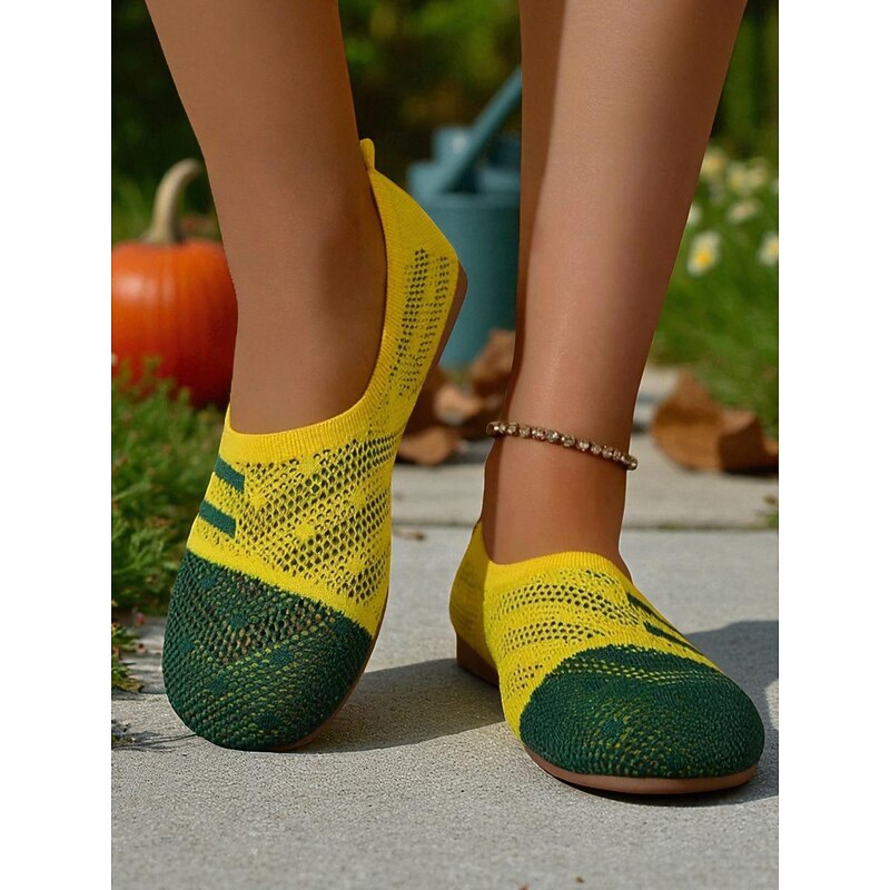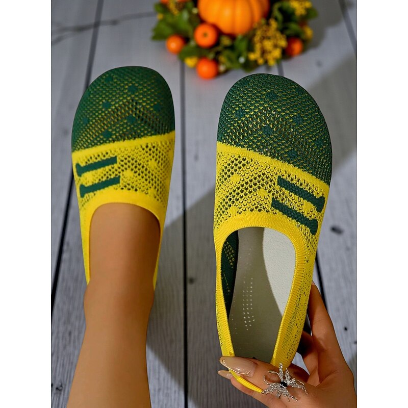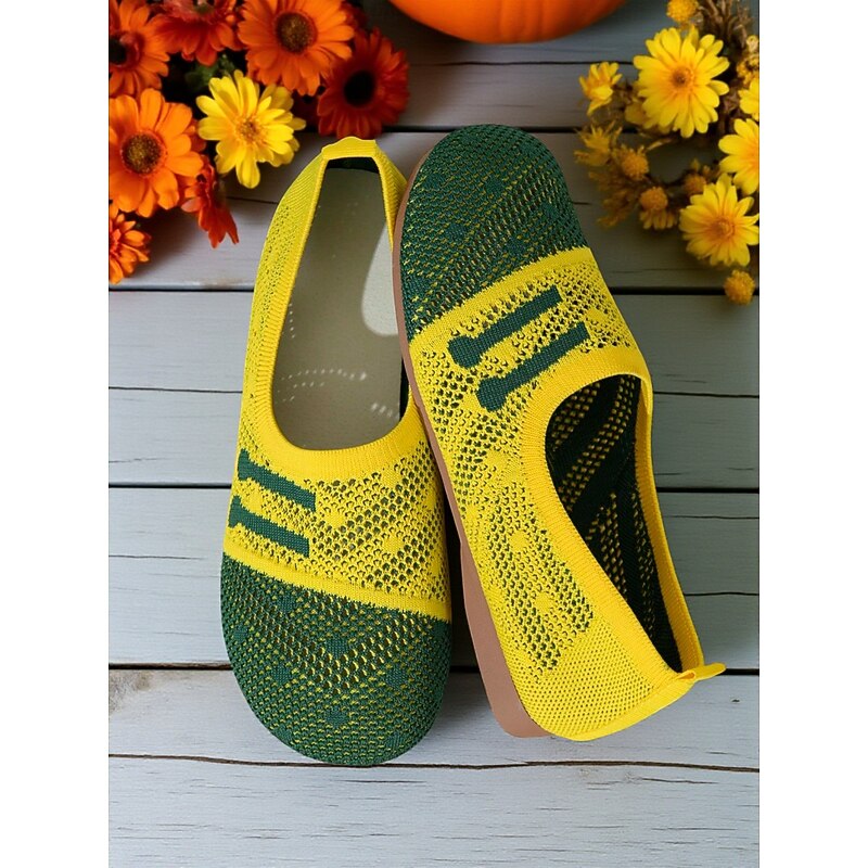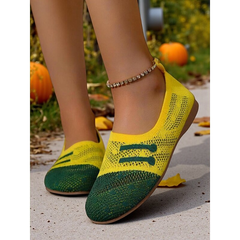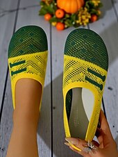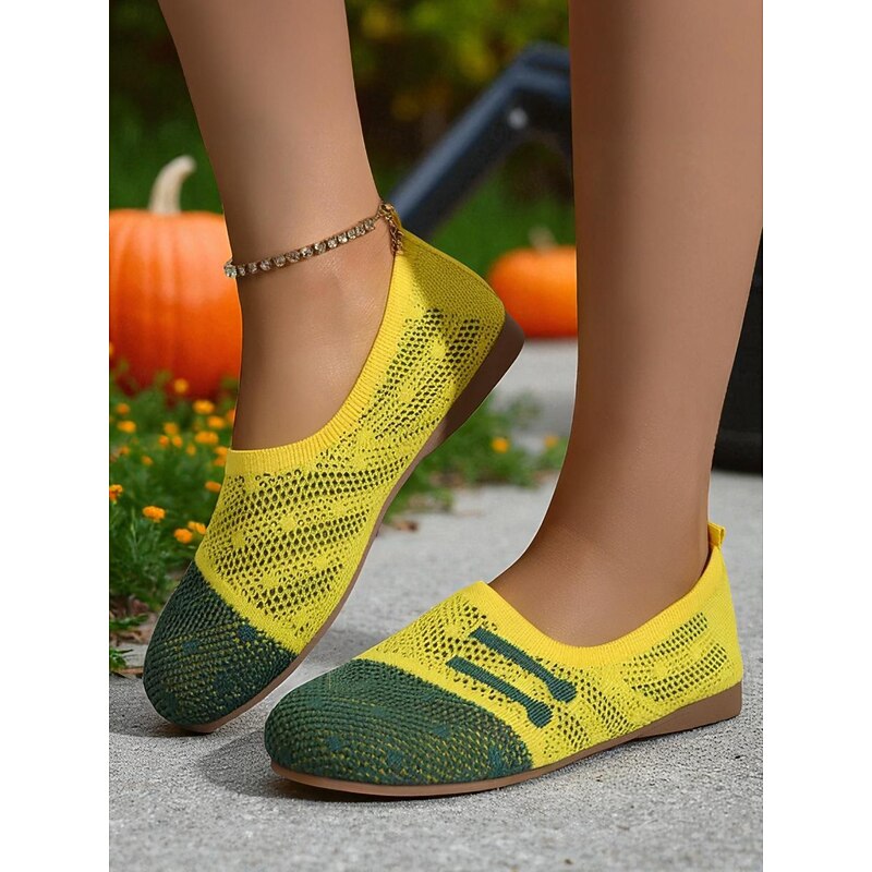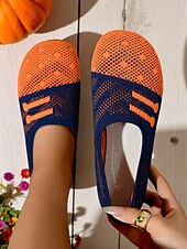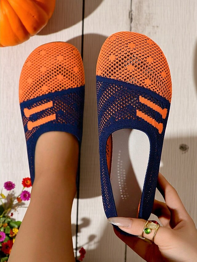 HOT ! Women's Orange Flyknit Flats – Breathable Slip-On Shoes for Halloween, Fall Festivals and Casual Daily Looks