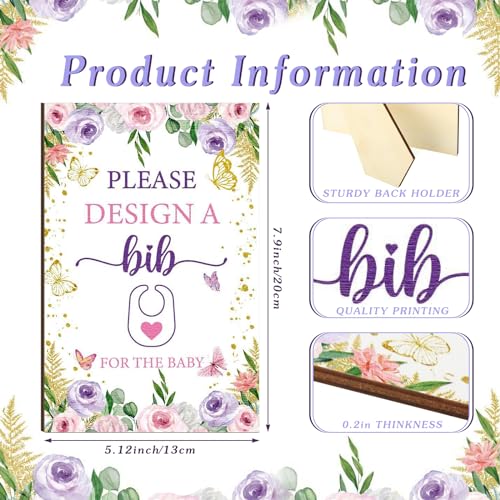 50 Pcs Baby Shower Game White Bibs Supply Includes 1 Wooden Baby Shower Game Sign 25 DIY Blank White Bibs Feeder 24 Fabric Markers(Butterfly) 4