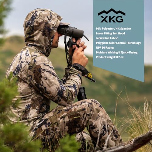• Our Mens shirts are Available in camo and solid color options, the XKG Performance Hoodie offers lightweight concealment and sun protection, blending seamlessly with your outdoor gear.