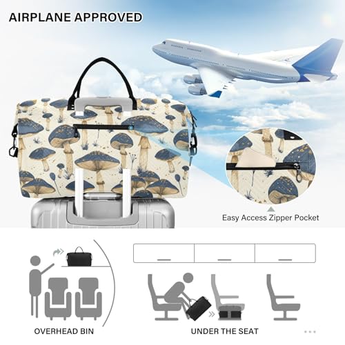 Travel Duffel Bags Old Style Mushroom Blue Beige Carry On Personal Item Bag with Toiletry Bag for Hiking 2 Pcs Set bolsa para gym para mujer 7