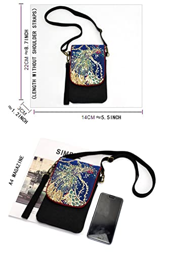 Embroidered Crossbody Bag for Women Handbags Wristlet Wallet Bag Cell-phone Pouch Coin Purse Cute Mini Vintage 1