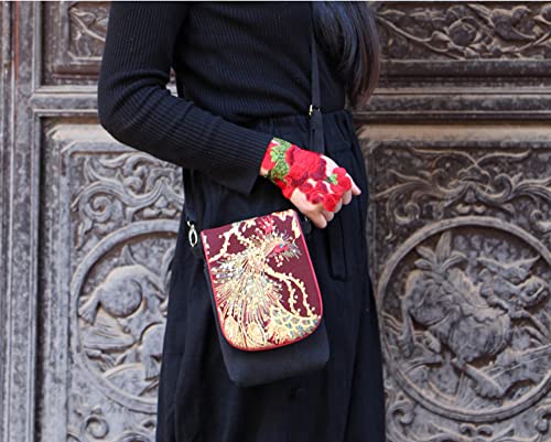 Embroidered Crossbody Bag for Women Handbags Wristlet Wallet Bag Cell-phone Pouch Coin Purse Cute Mini Vintage 5