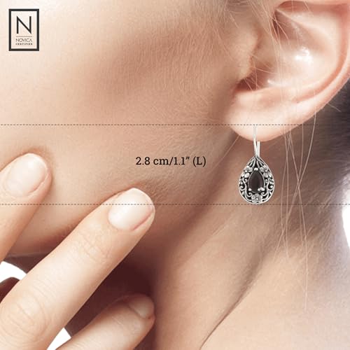 HOT ! NOVICA Handmade Floral Garnet Earring | Sterling Silver Red Drop Dangle | Hypoallergenic Jewelry | Long Hook Wire | Artisan Crafted | Aurora Birthstone | Lovely Daisies 1.1"L x 0.5" W x 0.2" D