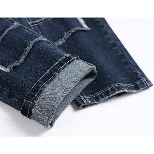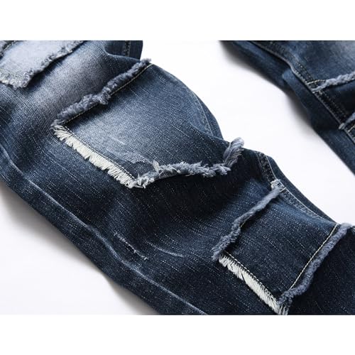 Men's Patched Casual Jeans Cargo Distressed with Patches Jean Biker Ripped Straight Denim Pants 6