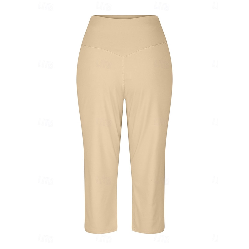 Highlights [Fabric] : These women's wide-leg chinos are crafted from a lightweight and breathable polyester fabric, ensuring comfort and ease for everyday wear. The micro-elasticity of the material provides a little stretch, enhancing the relaxed feel. [Fit & Style] : Designed with a high-waist and a wide-leg cut, these pants offer a classic yet modern silhouette. The wide elastic waistband offers additional support, contributing to a comfortable and flattering fit throughout the day. [Design Highlights] : Featuring a practical design with side pockets, these pants blend functionality with style. The plain pattern and neutral color options make them versatile, while the calf-length cut adds a contemporary twist to the classic chinos style. [Occasions] : Ideal for casual outings and leisure activities like yoga, these pants are perfect for transitioning between spring and fall seasons. Their versatile style allows you to pair them with a variety of tops, suiting different events and personal styles. [Size Range] : Available in a range of sizes from S to 2XL, these pants cater to a broad audience, ensuring a comfortable fit for various body types.