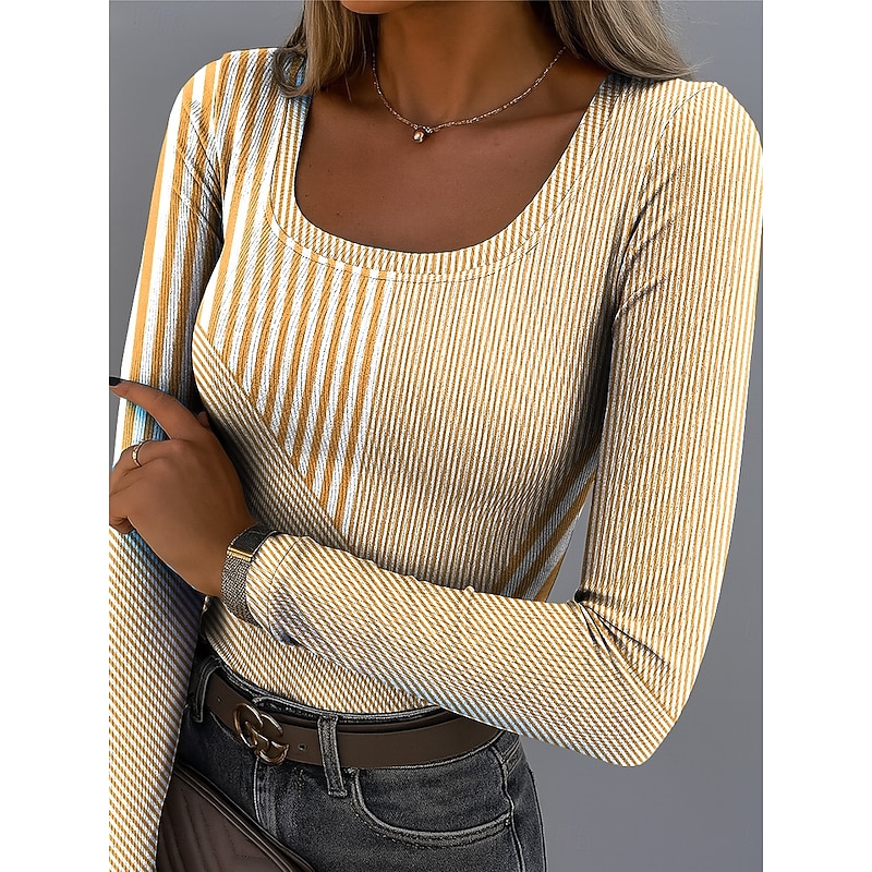 This Women's T Shirt Ribbed Graphic Square Neck Long Sleeve Casual Geometric Abstract Vintage trendy Regular Tops Daily Print Yellow Pink Blue Purple Green Spring Fall combines elegant design with practical functionality. Every detail has been carefully considered to ensure you get the best possible experience. The top-grade construction means this product will serve you well for years to come.