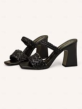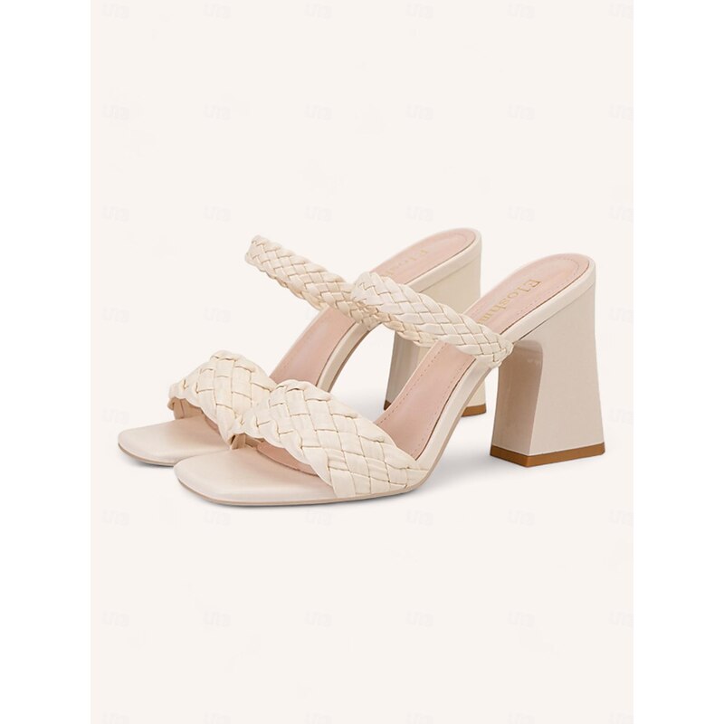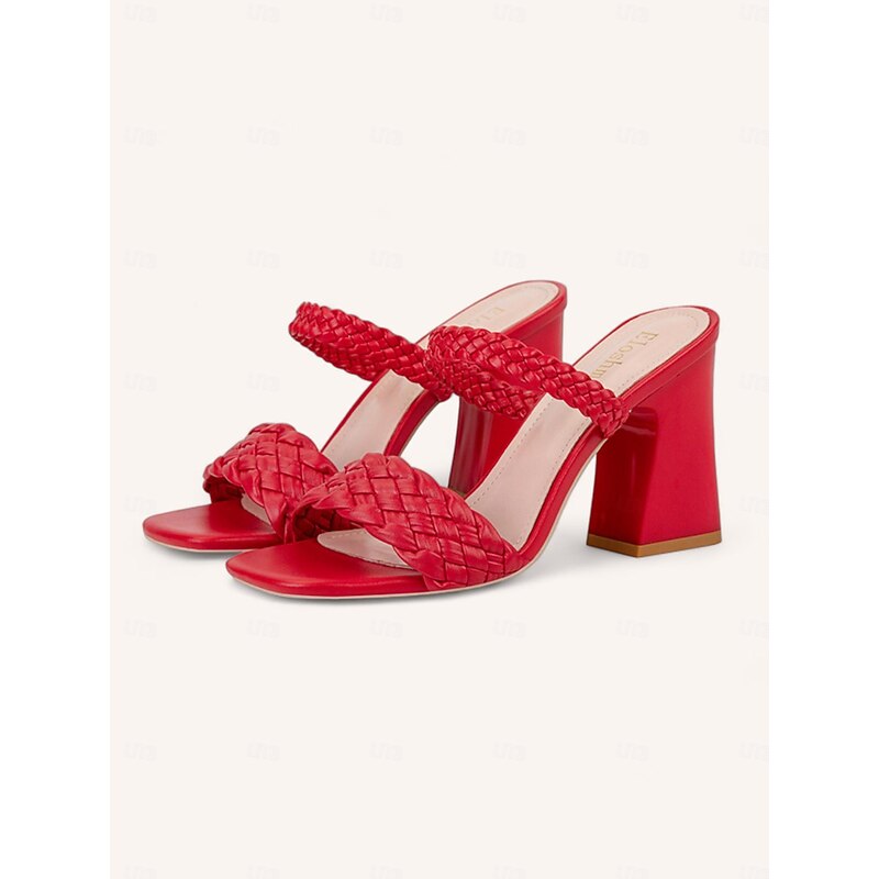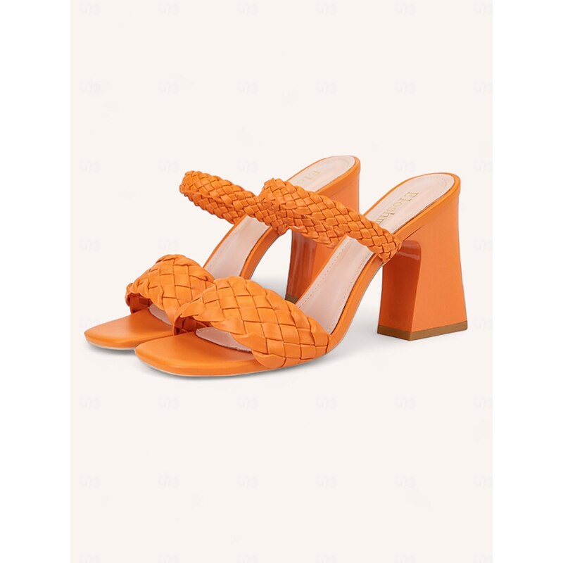 Highlights [Fabric] : Crafted from premium faux leather, these women's sandals offer a luxurious feel that mimics genuine leather while providing durability and comfort for long-term wear. The upper material is designed to maintain its elegant appearance throughout various seasons and events. [Style] : Showcasing a sophisticated braided pattern, these heeled mules exude contemporary elegance. The chunky heel adds a touch of height and stability, while the square toe design lends a modern edge to these sandals. These versatile sandals come in an array of colors, including black, white, orange, red, and almond. [Design Highlights] : Featuring a fashionable ankle strap closure, these sandals ensure a secure fit and a chic look. The woven straps not only enhance the overall style but also contribute to a snug, comfortable fit, making these sandals the perfect choice for a stylish and stable stride. [Occasions] : Ideal for a variety of occasions, from weddings and parties to vacations, these sandals effortlessly complement both casual and formal attire. Their classic design and neutral hues allow them to pair seamlessly with diverse wardrobe pieces, making them suitable for any event. [Size Guidance] : Available in a range of sizes, these sandals cater to an array of foot sizes with options from US5.5 to US9. This extensive sizing ensures that you find the perfect fit for enhanced comfort and style.