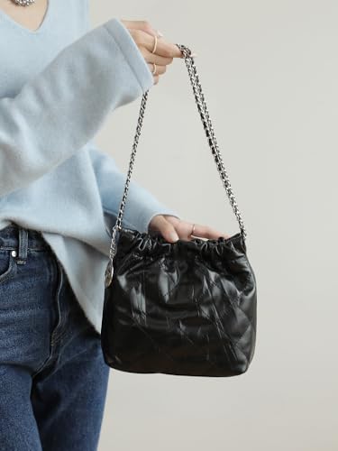 Why Choose Women's Cowhide Chain Silver Ball Cloud Trash Bag Hangbag Shoulder Crossbody Totes Bucket Bag Versatile Hobo Chis trendy?