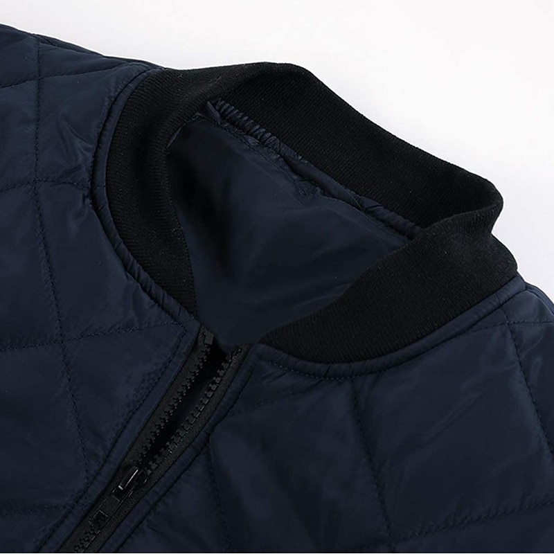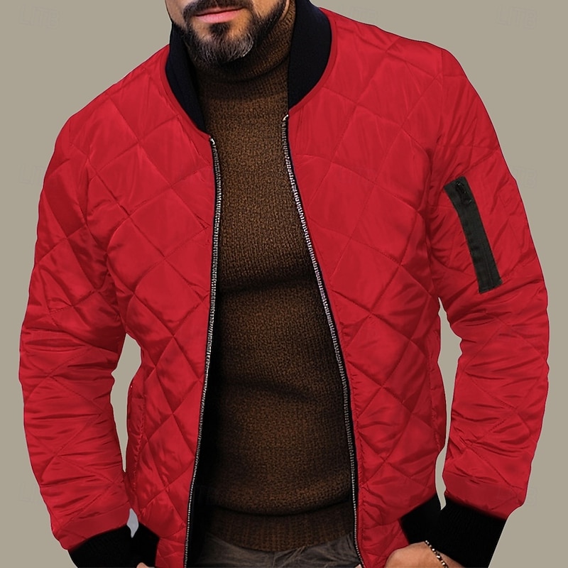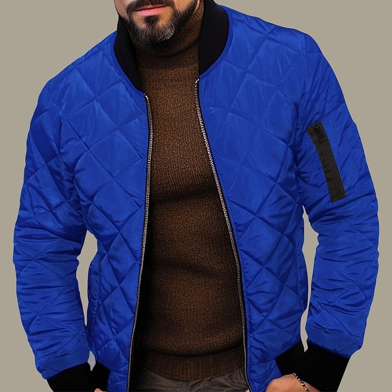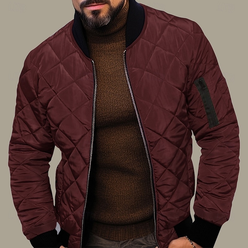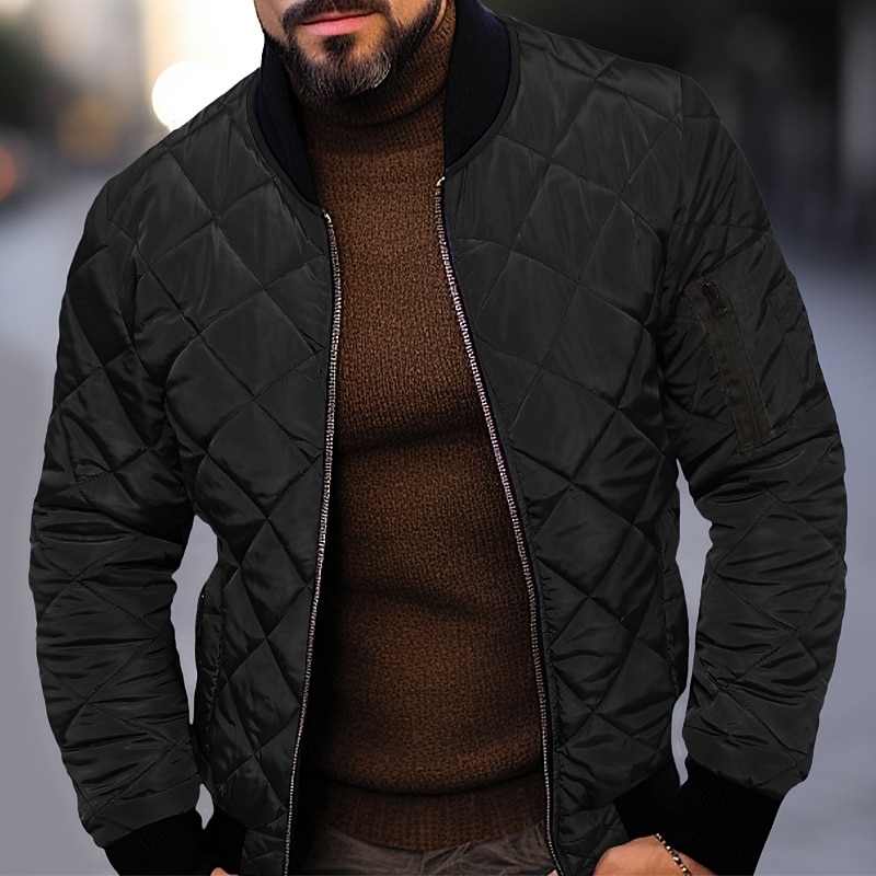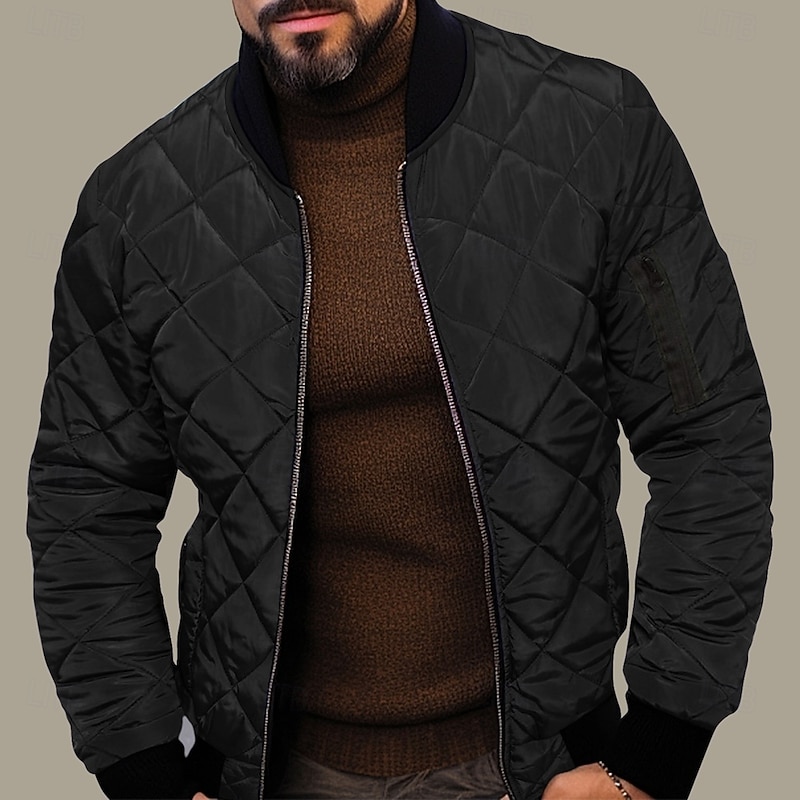 : Crafted from high-quality polyester, this men's quilted jacket ensures both warmth and durability. The diamond-quilted pattern not only provides insulation but also adds a sophisticated texture, making it a reliable choice for the colder months.