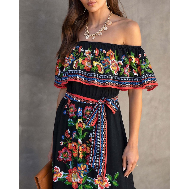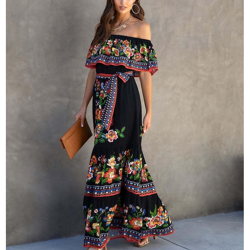 $53.99 - Mexican Dress for Women Off-Shoulder Ruffle Floral Print Summer Party Casual Maxi Dresses Ladies Beach Sundress 2025. Shop for cheap Ethnic & Cultural Costumes online? Buy at lightinthebox.com on sale today!
