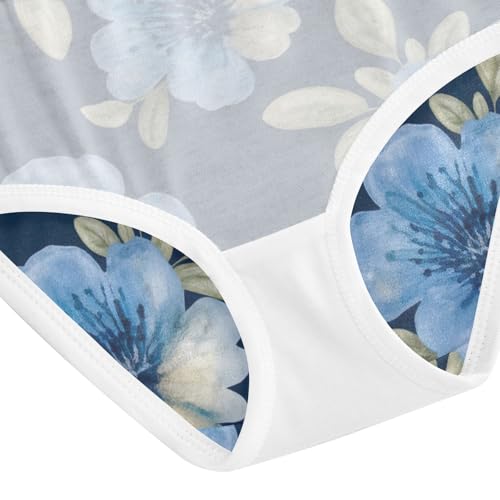 Painted Blue Beige Flowers Panties for Girl Toddler Underwear Custom Cotton Florals Briefs Girls Undies 2t 5