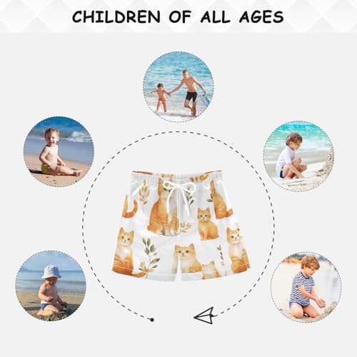 Pigsaly Boys' Swim Board Shorts Watercolor Leaves Cute Yellow Cat Boy's Swim Trunks Kids Swimwear 3T 5