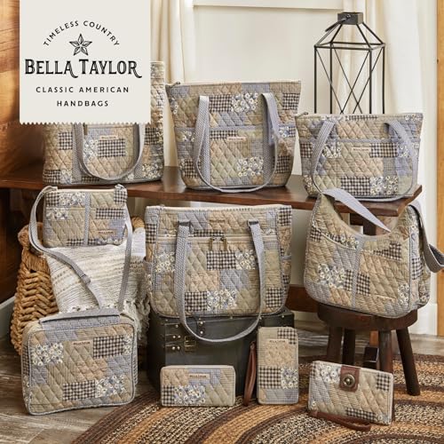 HOT ! Bella Taylor Slim Card Wallet for Women | Quilted Cotton Fabric Zip Around Credit Card Wallet with RFID Protection | Khaki Patchwork