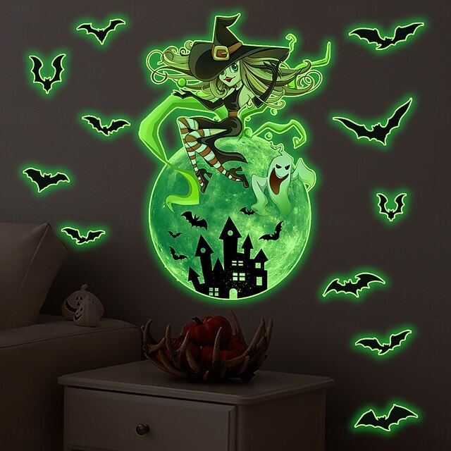 HOT ! Halloween Decal Stickers Glow in The Dark Decoration, Luminous Pumpkin, Witch, Ghost, Haunted House, Moon, and Bat Wall Decals, Self-Adhesive Halloween Bedroom Decor