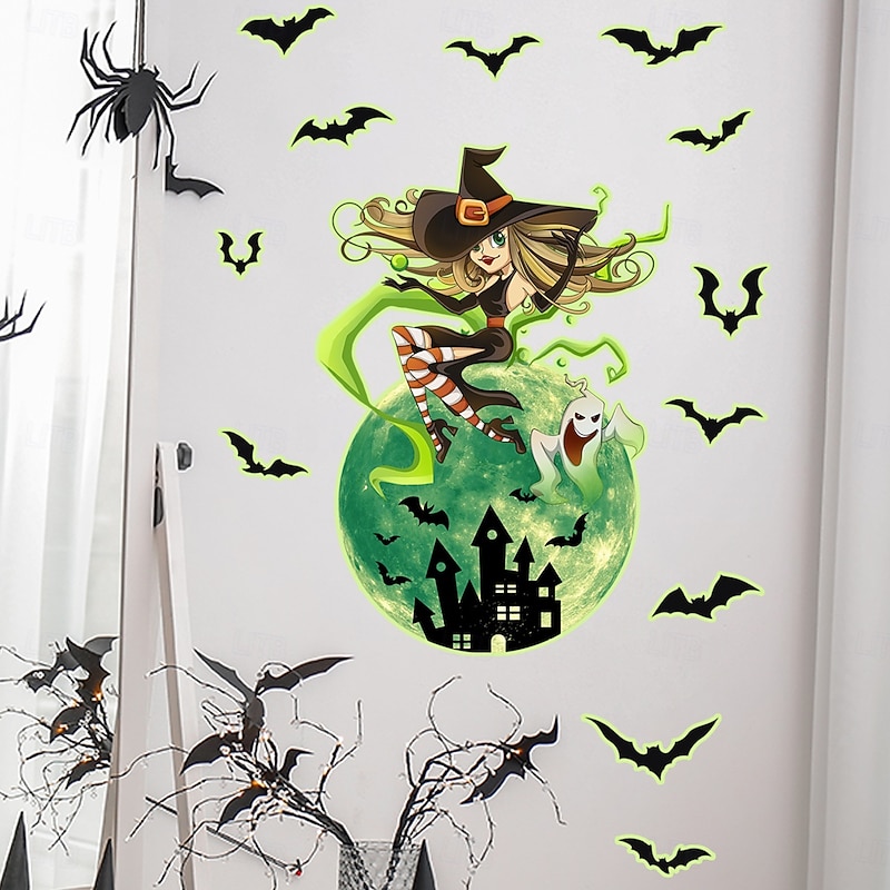 CAD $10.99 - Halloween Decal Stickers Glow in The Dark Decoration, Luminous Pumpkin, Witch, Ghost, Haunted House, Moon, and Bat Wall Decals, Self-Adhesive Halloween Bedroom Decor 2025. Shop for cheap Halloween Stickers online? Buy at lightinthebox.com on sale today!