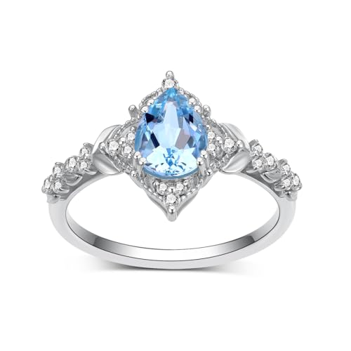 • 【SPECIAL DESIGN】--The engagement ring features a pear-cut center aquamarine stone, embellished with some small round cut moissanite arranged in a classic pave setting, stunning and noticeable, and the twinkling light a flame symbolizing happiness. This well designed engagement ring will really look amazing on your bride-to-be’s finger and it will be a gift that she never forgets.