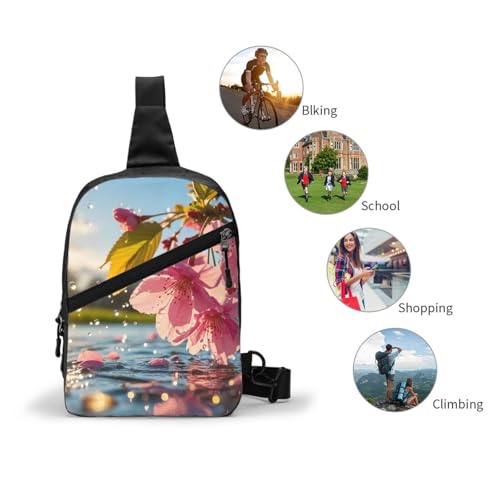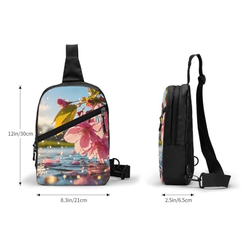 HOT ! Japanese Cherry Flowers Print Men's and Women's Foldable Crossbody Bag,Sports Crossbody Bags,and Daily Chest Bags