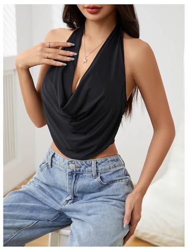 More information about SOLY HUX Women's Halter Draped Front Tank Top Sexy Backless Going Out Crop Vest Tops