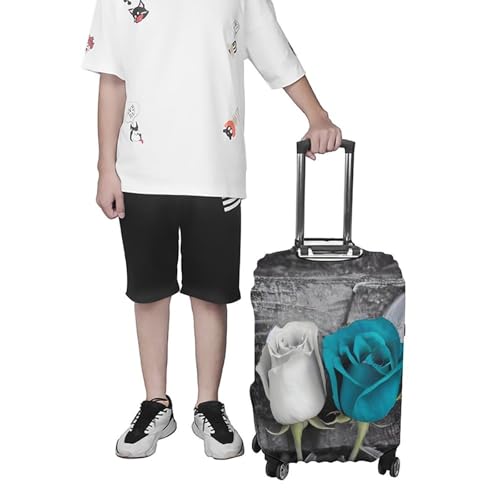 Teal Gray Rose Luggage Cover, Elastic Luggage Protector Fits 19-32in Suitcases, Washable & Anti-Scratch Suitcase Cover for Men Women M 7