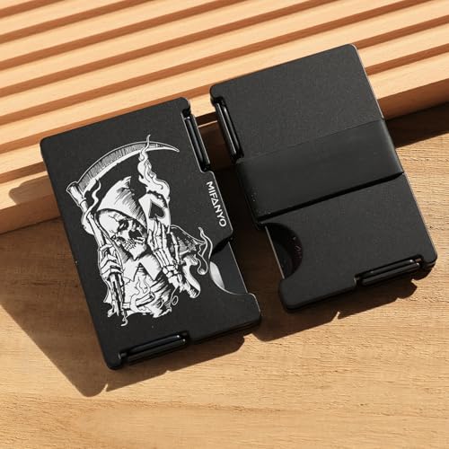 HOT ! Wallet for Men, Modern-Modular-Design, Minimalist Card Holder with Cash Strap, Slim Metal Front Pocket Wallet, RFID Blocking, Personalized Engraved Scythe Skull