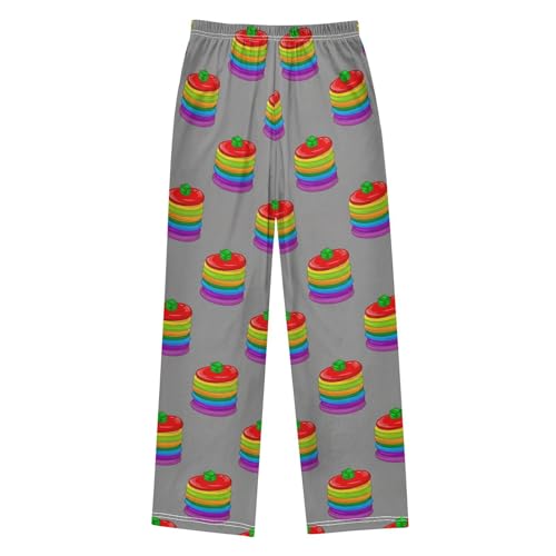 VIGTRO Pajama Pants Long Sleep Bottoms Colorful Stacked Pancakes, Soft Elastic Waist Lounge Pants with 2 Pockets Size 11-12 Years 1