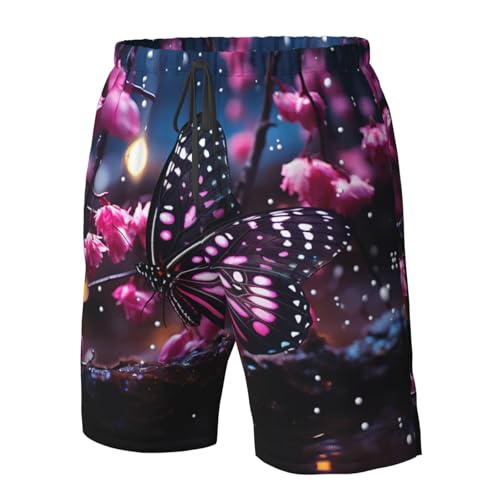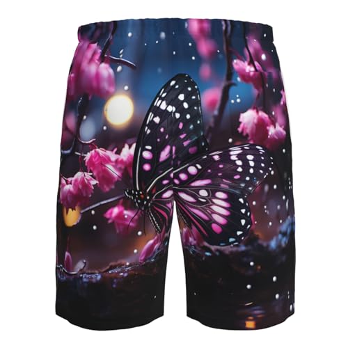 HOT ! Floral Butterfly Print Mens Casual Shorts Drawstring Summer Beach Stretch Shorts Novelty Swimtrunks