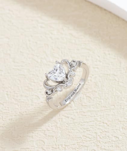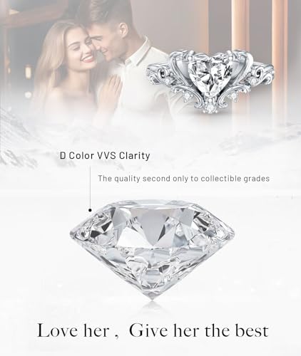 • White Moissanite: All stones in the ring are genuine moissanites, totaling 1.08 carats (D Color, VVS Clarity), center stone is 1ct (6.5mm) heart shaped brilliant cut white moissanite
