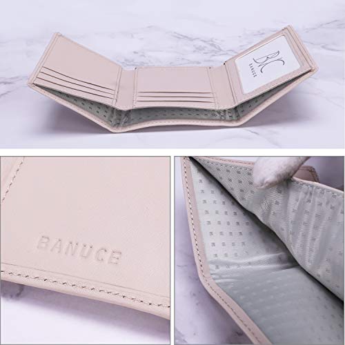 Banuce Top Grain Leather Trifold Wallet for Women Small with Credit Card Holder and ID Window 7