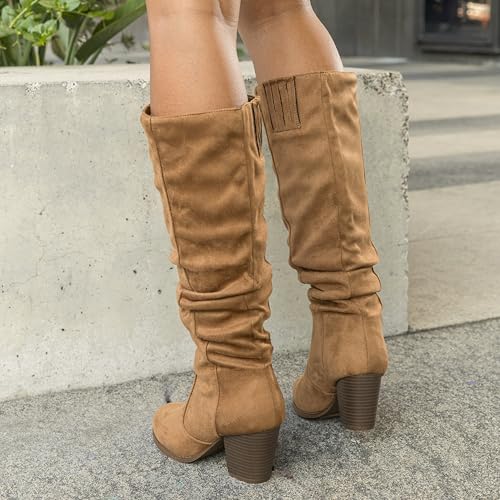 RF ROOM OF FASHION Women's Stacked Heel Slouchy Knee High Boots (Regular Fit) 4