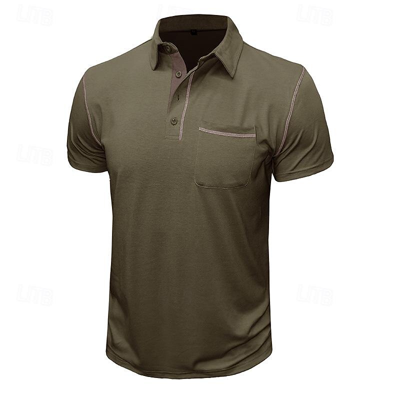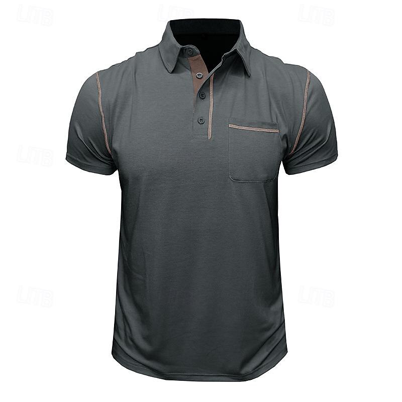 More information about Men's Cotton Polo Shirt Golf Shirt Work Casual Lapel Short Sleeve Basic Modern Color Block Patchwork Button Spring & Summer Regular Fit Wine Dark Gray Black White Royal Blue Green Cotton Polo Shirt
