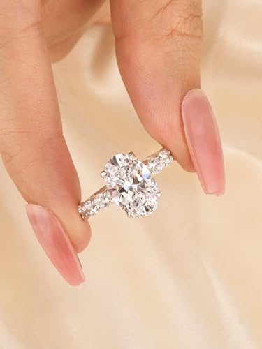 3.5CT Oval Cut Engagement Ring for Women, Sterling Silver 5A Cubic Zirconia Ring with Accented Band, Simulated Diamond Wedding Jewelry Gift 5
