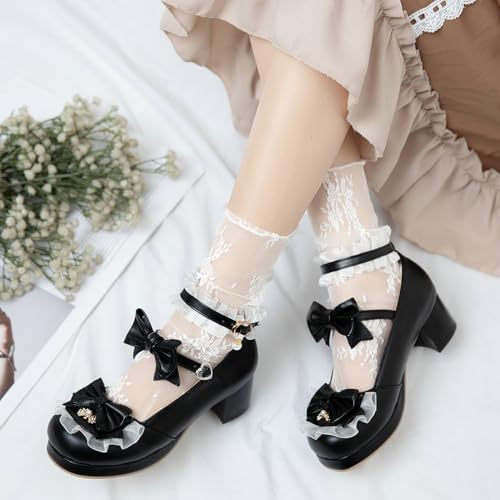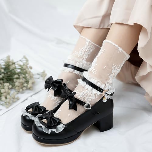 More information about Women Cute Lolita Shoes Platform Mary Janes Kawaii Strappy Ankle Strap Sweet Pumps Lace Cross Tied Dress Pumps