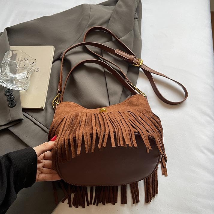 More information about Bohemian Fringe Crossbody Bag For Women Slouchy Suede Hobo Bags Retro Crescent Hobo Bag Trendy Shoulder Purse 2025