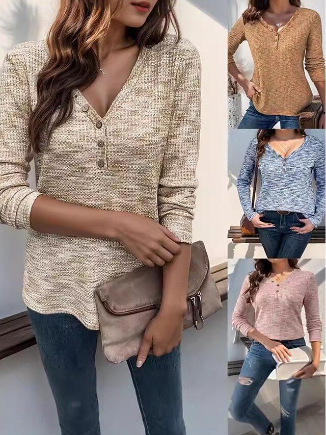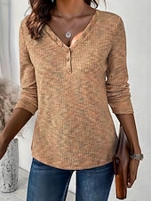 More information about Women's Blouse Geometric Stylish Casual Long Sleeve V Neck Regular Tops Daily Buttons Print Pink Sky Blue Brown Khaki Summer Spring
