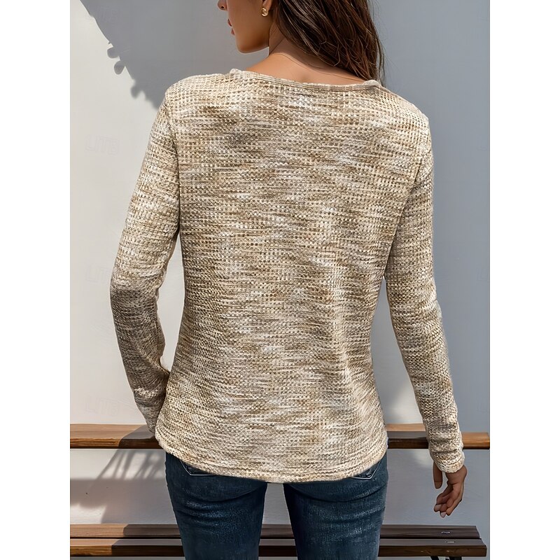 Women's Blouse Geometric Stylish Casual Long Sleeve V Neck Regular Tops Daily Buttons Print Pink Sky Blue Brown Khaki Summer Spring 12