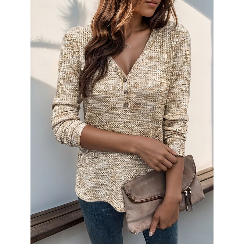 HOT ! Women's Blouse Geometric Stylish Casual Long Sleeve V Neck Regular Tops Daily Buttons Print Pink Sky Blue Brown Khaki Summer Spring