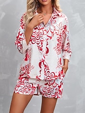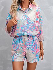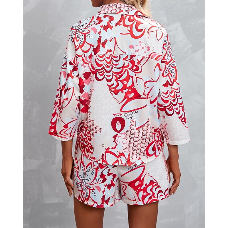 More information about Women's Active Streetwear Shirt Blouse Shorts Sets Long Sleeve Shirt Collar Floral Print Vacation Casual Daily Pink Red Fall Regular Fit