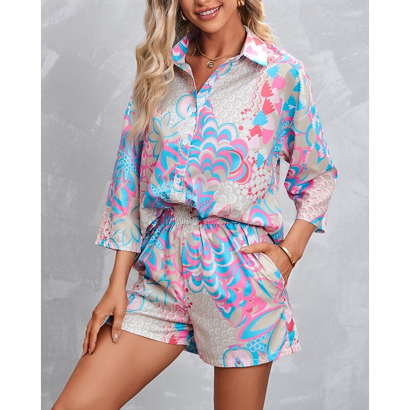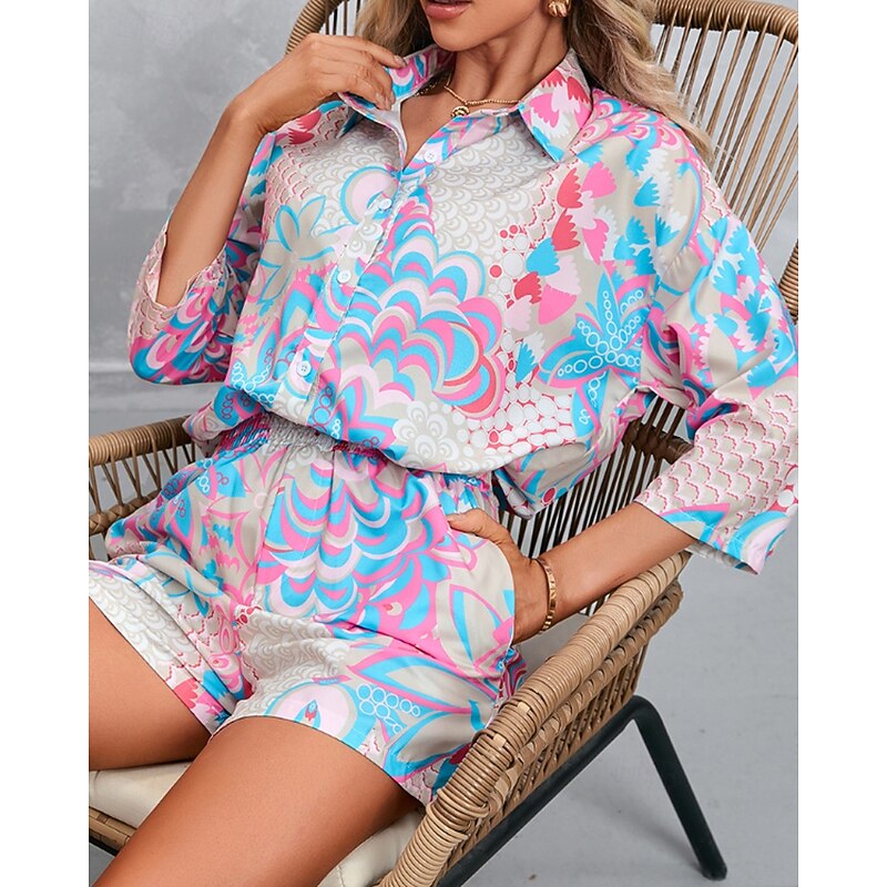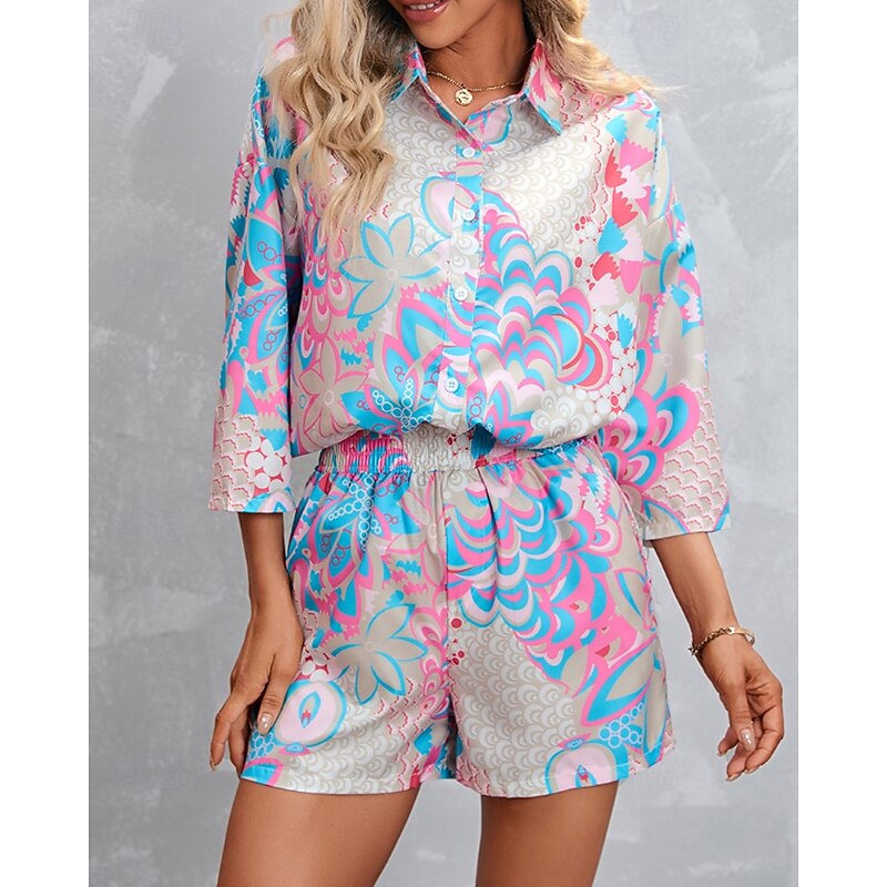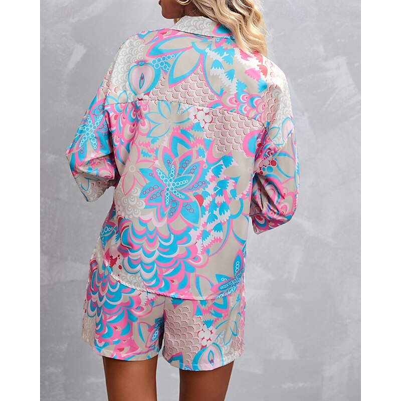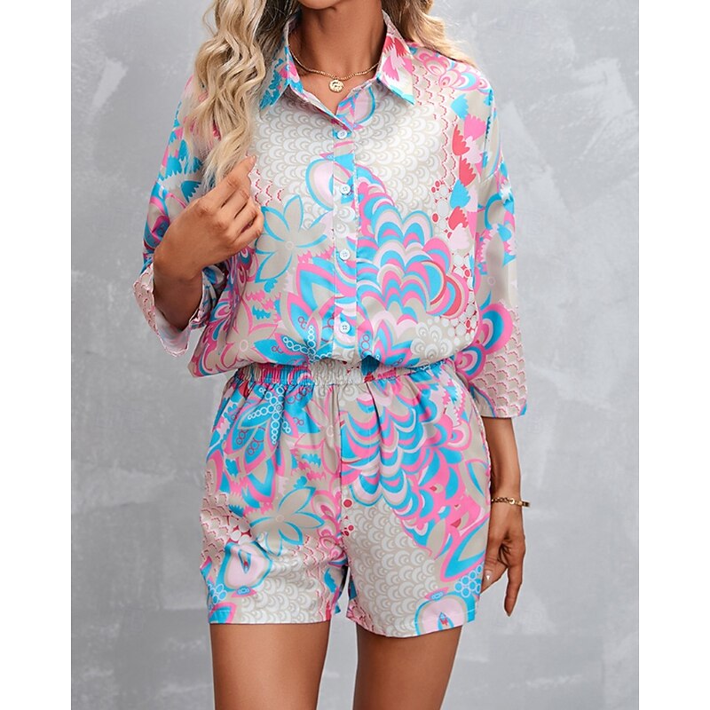 HOT ! Women's Active Streetwear Shirt Blouse Shorts Sets Long Sleeve Shirt Collar Floral Print Vacation Casual Daily Pink Red Fall Regular Fit