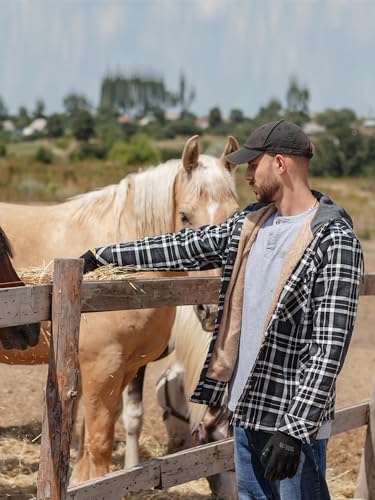 Mr.Stream Men's Hooded Coat Casual Thicken Plaid Work Flannel Snap Sherpa Lined Fleece Shirt Jacket 6
