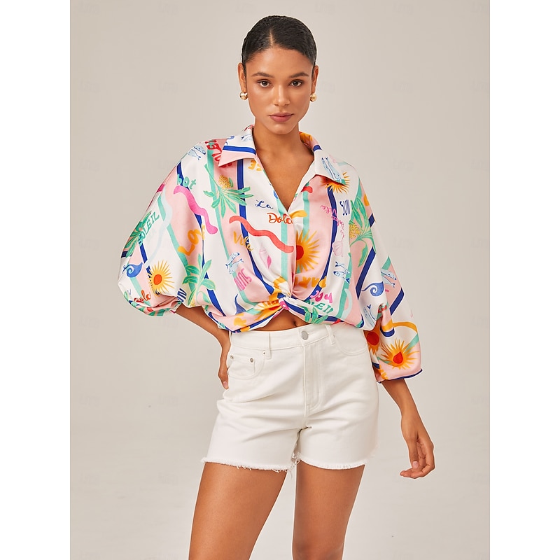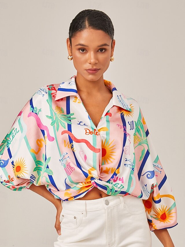 Tropical Print Twist Front Shirt 1
