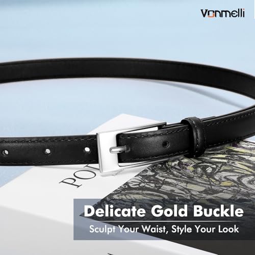 HOT ! VONMELLI Thin Belts for Women Skinny Leather Belt Women for Dress Jeans Fashion Waist Belt with Sliver Buckle
